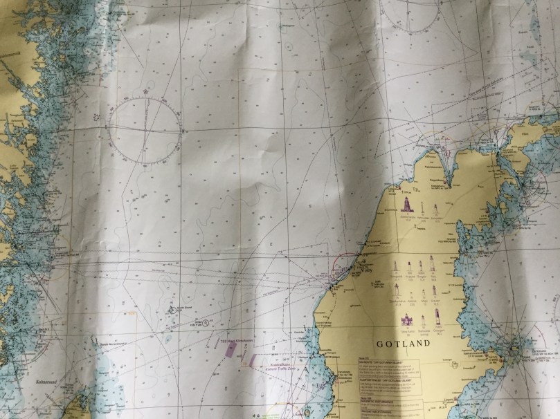 På vägen dit startade vi tidigt på morgonen vilket även det var en upplevelses och en första gång med samtliga lanternor tända och att inte kunna se prickarna i farleden utan att helt behöva förlita sig på plotter. Efter någon timme började solen lysa och vi gick för segel med en bra medelhastighet men det nöjet varade bara cirka tre timmar innan vinden vände och vi fick den rätt i fören. Resterande tid fick det bli motorsegling i rätt höga och täta dyningar samt vågor som absolut skulle komma från ett helt annat håll men efter totalt cirka 10 timmar angjorde vi Lickershamn norr om Visby.