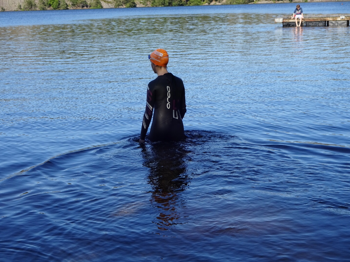 Karin passade på att ta dom första utomhussimtagen, hon ser sååå smidig ut när hon glidet fram genom vattnet. Enligt hennes utsago var det skönt i vattnet (med våtdräckt). Bara att dra igång träningen inför sensommaren Stockholm Triathlon.