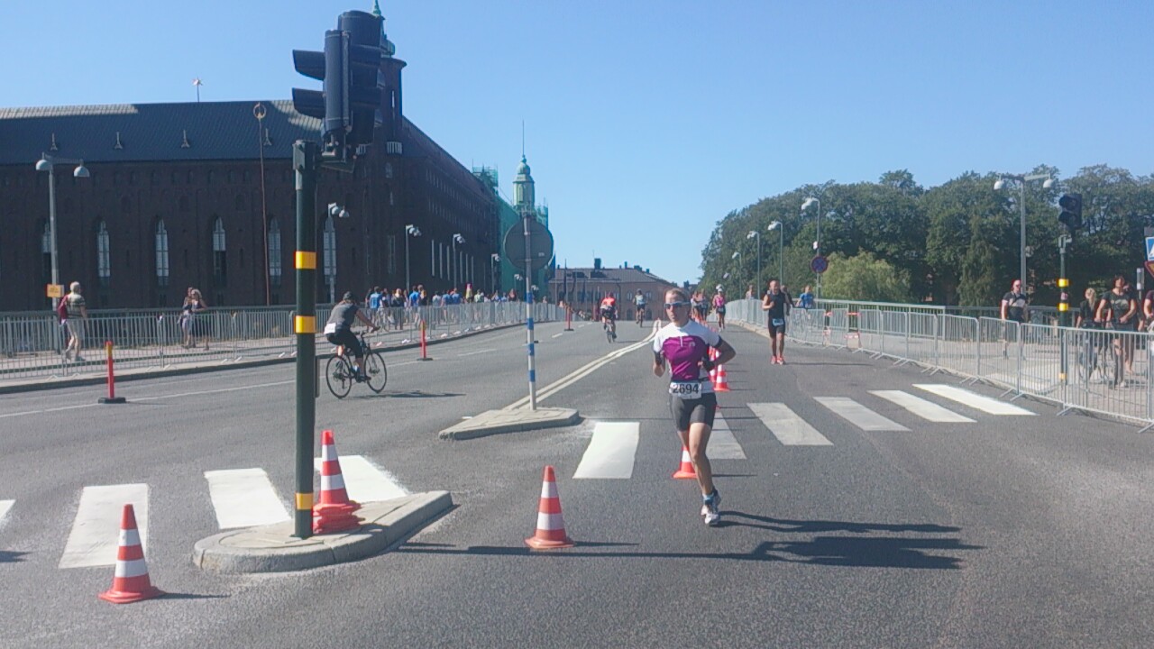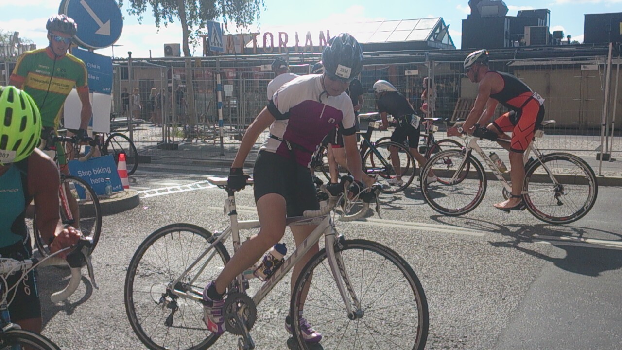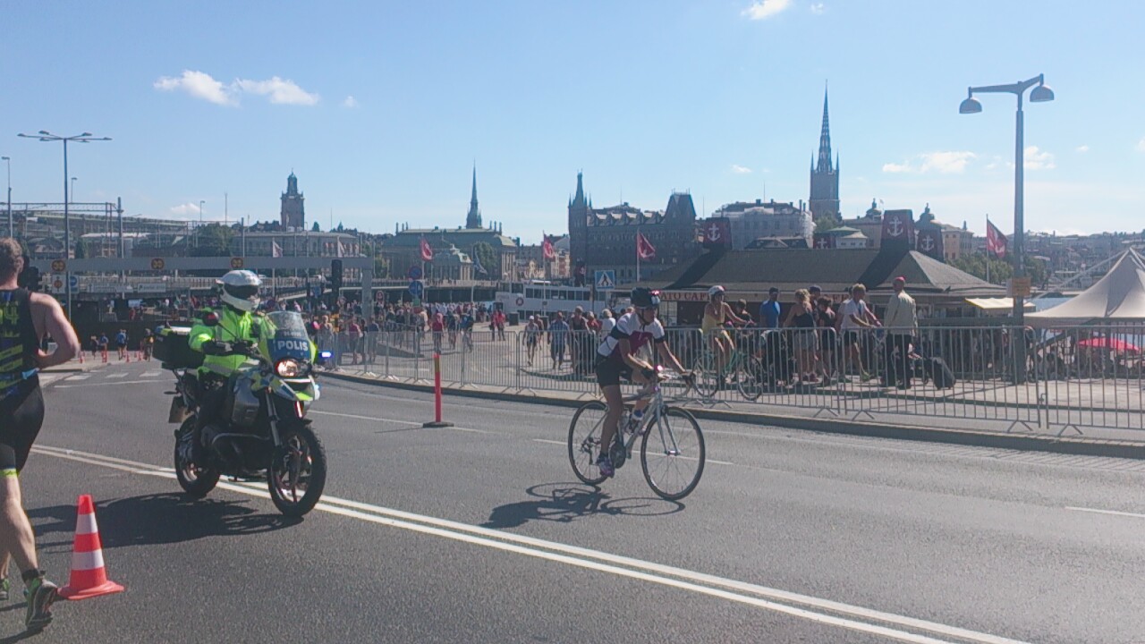 Ur våtdräkten och på med cykelprylarna för 40 km hårdkörning på en 3 varvs bana där varje varv har Västerbron två gånger.